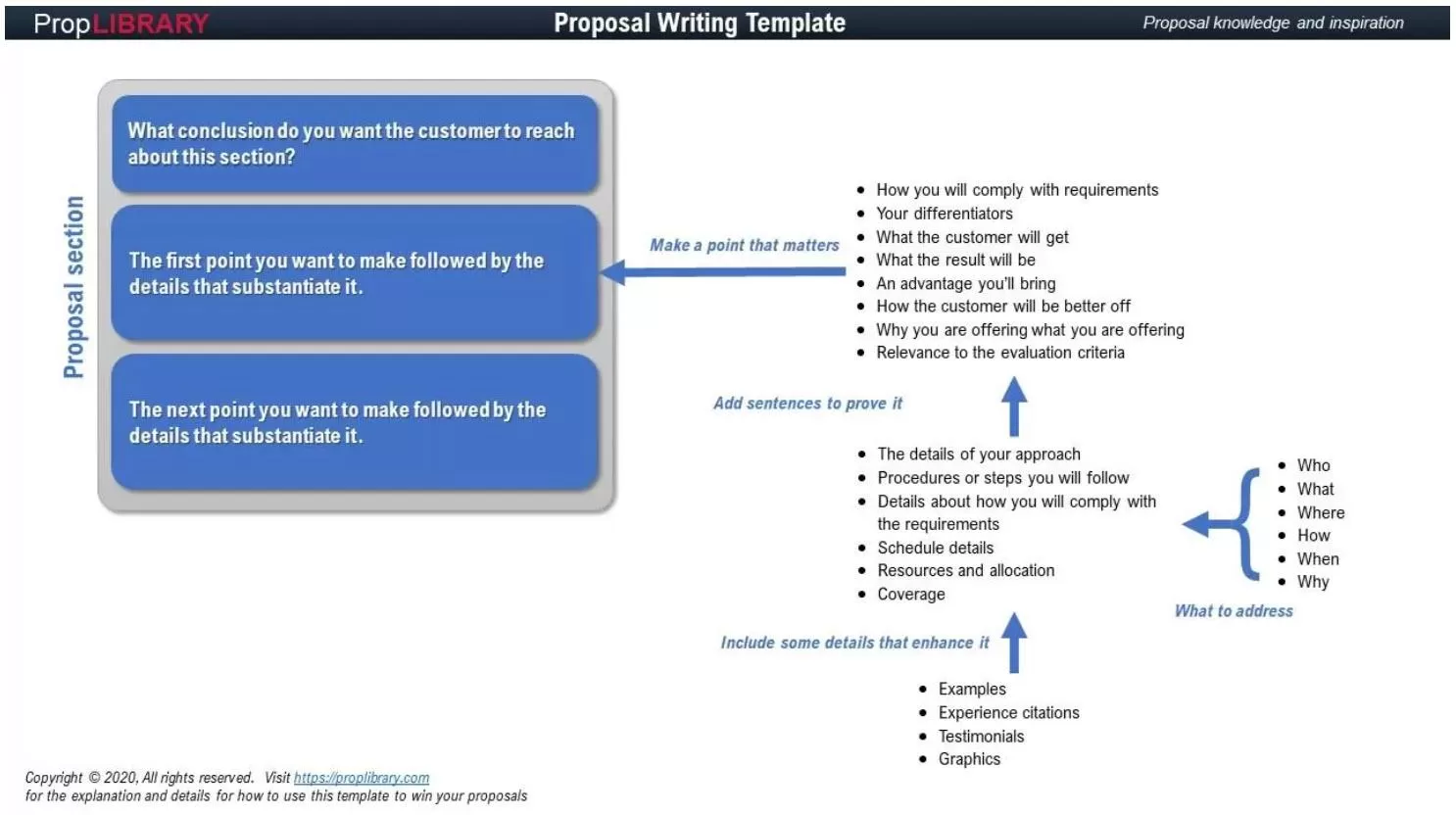 Instructions for the third step: If your proposal formatting template has placeholders for themes (for example, at the beginning of each major section), then you should replace them with the actual theme. If the Proposal Writer will be responsible for writing the theme statements, then insert an instruction as a placeholder to explain what they should write there. Also include instructions for how to substantiate, prove, or explain the theme statements.- 0 comments