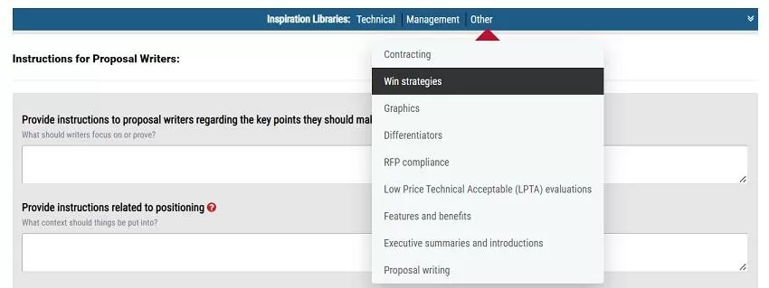 The Inspiration Libraries we’ve added to MustWin Now can have a huge impact on your proposals, by changing how they get written in a way that can radically improve win probability. MustWin Now’s Inspiration Library helps people understand what should go into a proposal content plan and greatly accelerate creating one. It sets your proposal writers up for success by enabling you to rapidly describe what should go into each proposal section and how it should be presented. The Inspiration Libr- 0 comments