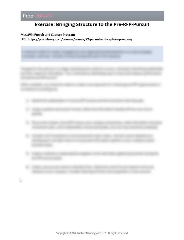 Information gathered pre-RFP must be assessed and become part of proposal content planning for it to reliable find its way into the proposal document. Creating the items described in this exercise can help you streamline and integrate these efforts.- 0 comments
