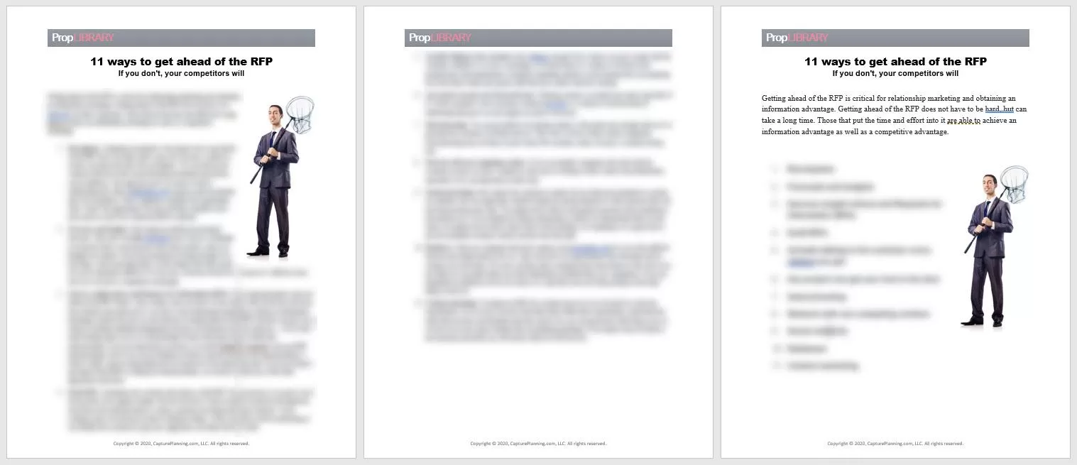 Getting ahead of the RFP is critical for relationship marketing and obtaining an information advantage. Getting ahead of the RFP does not have to be hard, but it can take a long time. Those that put the time and effort into it are able to achieve an information advantage as well as a competitive advantage. This is a PDF handout, suitable for printing. It includes a cheat sheet you can print and posts on your wall as a constant reminder. ?- 0 comments