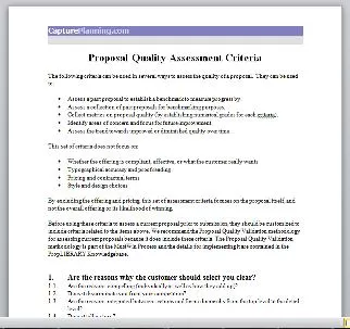It’s good to use quality criteria at the back end to review your proposals. But it doesn’t make a lot of sense to only use quality criteria after the proposal is written. Or to create your quality criteria after the proposal has been written. It’s much better to put the effort into creating your quality criteria at the very beginning so that proposal contributors receive the quality criteria when they receive their writing assignments. This enables them to create a first draft that meets the qua- 0 comments